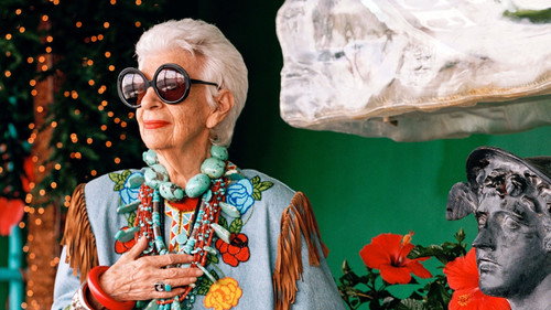 Круглые очки и гигантские украшения, бесконечные гардеробы, обложка Dazed и Дрис ван Нотен с Канье Уэстом в поклонниках — все это Айрис. А еще у нее есть столетний муж Карл, с которым Айрис вместе с 1948-го, так что ее слова «Гораздо важнее быть счастливым, чем хорошо одетым» — это ничуть не лукавство: вот уж кто знает, о чем говорит. Не менее важный герой фильма — его режиссер, Альберт Майслес, автор «Серых садов» и «Gimme Shelter» о The Rolling Stones, скончавшийся в этом году в 83 года. «Iris» стала одним из его последних фильмов — он следовал за героиней по всему Манхэттену, добавив интервью ее почитателей и кадры с «Никона» и 16-мм кинопленки из семейного архива.