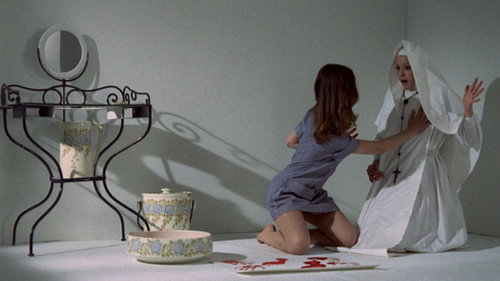 Главная героиня стирает грань между искусством и жизнью. Постепенно, с удовольствием она выливает вино на обнаженное тело подруги, выпускает в пупок с дюжину сырых яиц и любуется сочетанием красного и желтого. Так просто и ясно. Или раскрашивает алой краской грудь девушки. Но искусство, творимое на теле, не вечно. Две черные перчатки на стерильном белом фоне - появляется убийца. Краска смешивается с кровью, черенок кисти около соска сменяется ножницами...