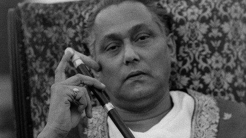 Действие происходит в двадцатые годы прошлого века во дворце в Нимтита, в Бенгалии. Покуривая хуку, на террасе сидит Бишвамбхар Рой, последний из рода бенгальских феодалов. Из соседнего дома доносятся звуки музыки — это сосед-нувориш устраивает праздник по случаю традиционного обряда инициации своего сына.